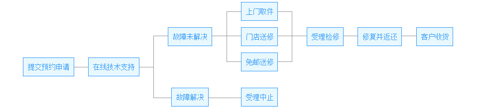 4、客户送修时秉承先进行软件故障处理,若故障无法排除,再进行硬件处理的处理流程;